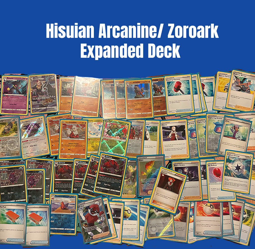 For sale is a 60-Card Hisuian Arcanine / Zoroark Pokémon Deck.